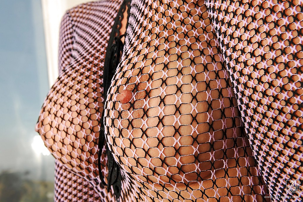 Мамочка в туфлях на высоком каблуке надела на себя костюм, сквозь который было видно красивое тело красотки и принялась позировать. Повернувшись задницей, мамочка раздвинула руками большие булочки и продемонстрировав анальное отверстие и волосатую киску, начала чпокать себя в задницу игрушкой.